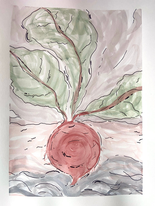 6. Beet sunset. Beet growth in progress from one orientation, sunset from the other.